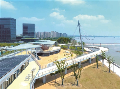 本报讯(记者 陆丹 通讯员 叶伊婧)从本月起,钱江新城二期标志性项目——钱岸公园正式面向市民游客开放,这为杭州增添了一处集生态、文化、运动、休闲于一体的滨水新空间。钱岸公园的“270°悬浮观景平台”观潮驿,也为杭州人新增了一个观潮的绝佳地点。