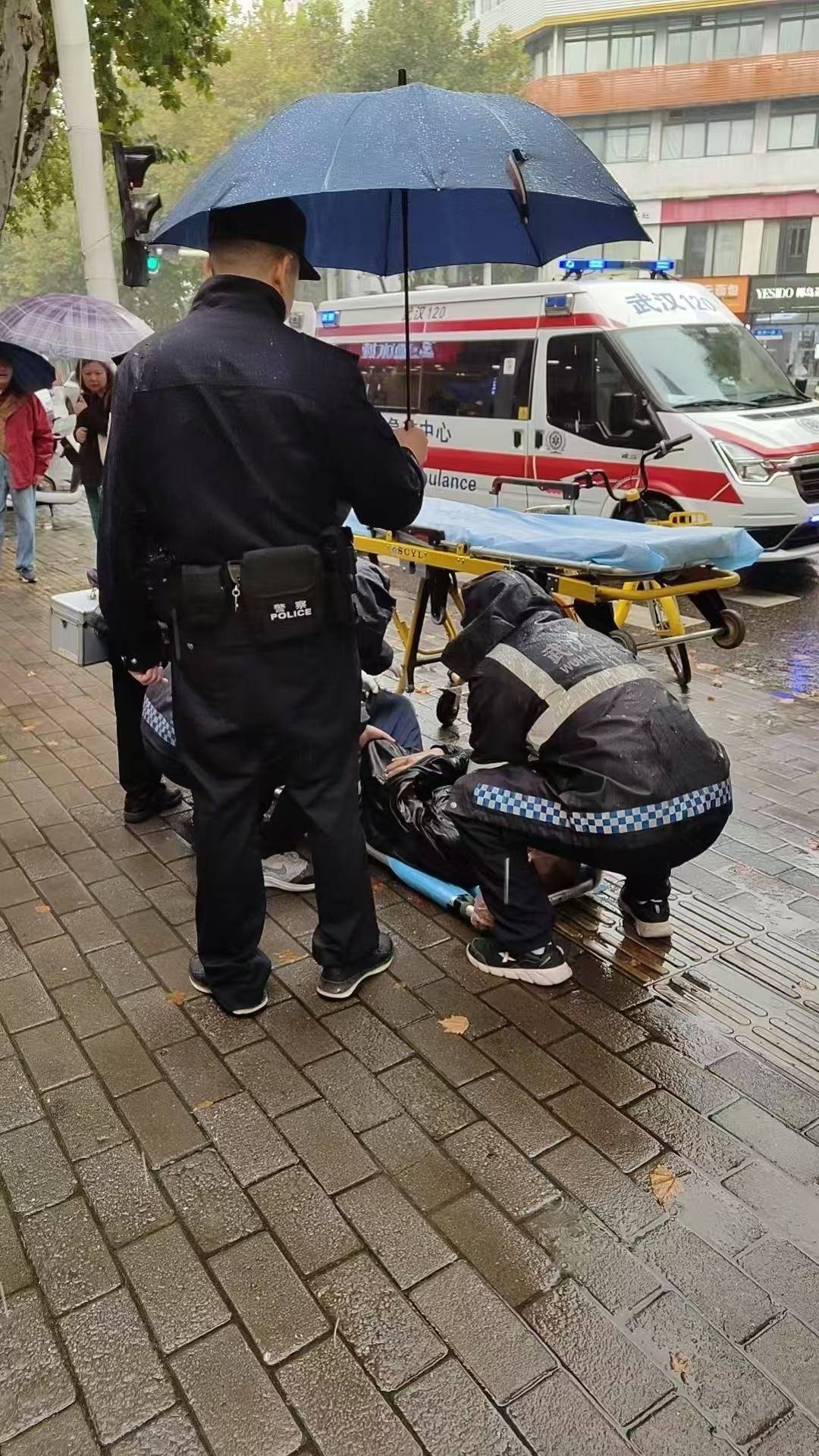 “天上还下着雨,地上有积水,我说这不行。”陈涛赶紧下车查看,询问对方情况,但没有得到应答。因担心对方出问题,他立刻拨打110和120求助,随后迅速向车队队长报备。由于担心随意挪动会对乘客造成二次伤害,陈涛选择留在现场为其打伞守护。