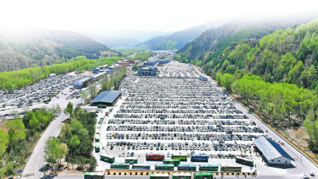 图为五台山游客服务中心前的1号、2号应急停车场。
