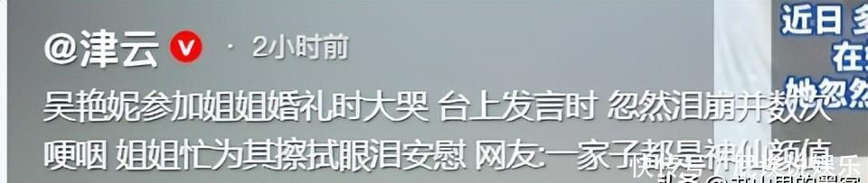 该说不说,网友的说辞多少有点犀利了。只是没想到吴艳妮前脚全运会上大哭,后脚回家参加婚礼就又哭上了。很多人无从所知,其实吴艳妮还有一个亲姐姐,这次回成都,也是很低调的参加亲姐姐的婚礼去了。