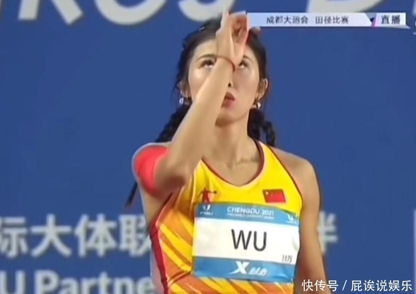 当然,这还不是最“高调”的地方,还有一个不能理解的地方,那就是吴艳妮在比赛之前的“特殊手势”了。每次比赛之前,吴艳妮都会用手比一个“1”的手势,并且还会抬头看看天,不知道的还以为是什么赛前“咒语”一样。